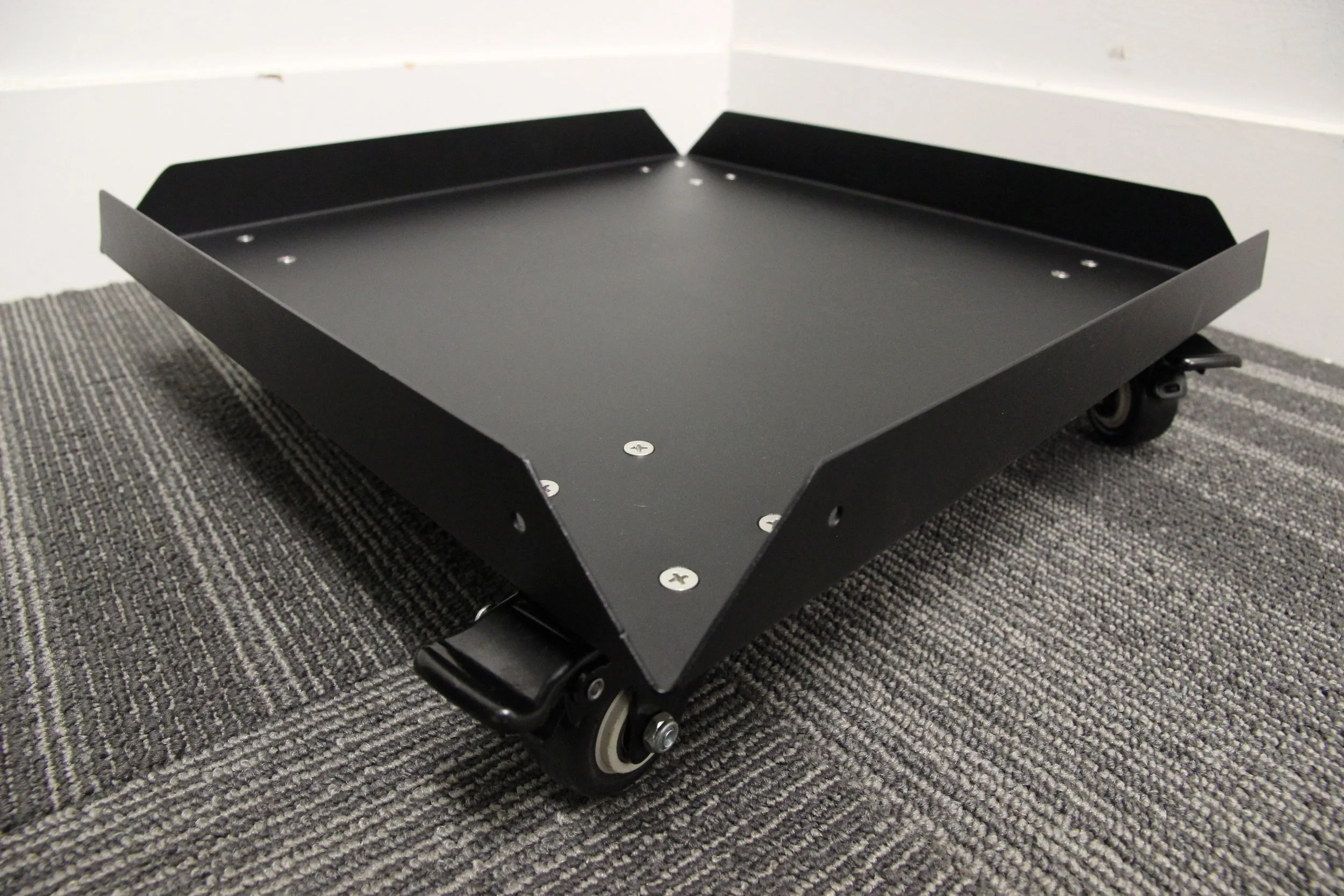 Each dolly has four 2” wheels, and each wheel has a double safety brake. When this brake is pressed down, both the wheel and the swivel are locked simultaneously, holding the tub dolly firmly in place.